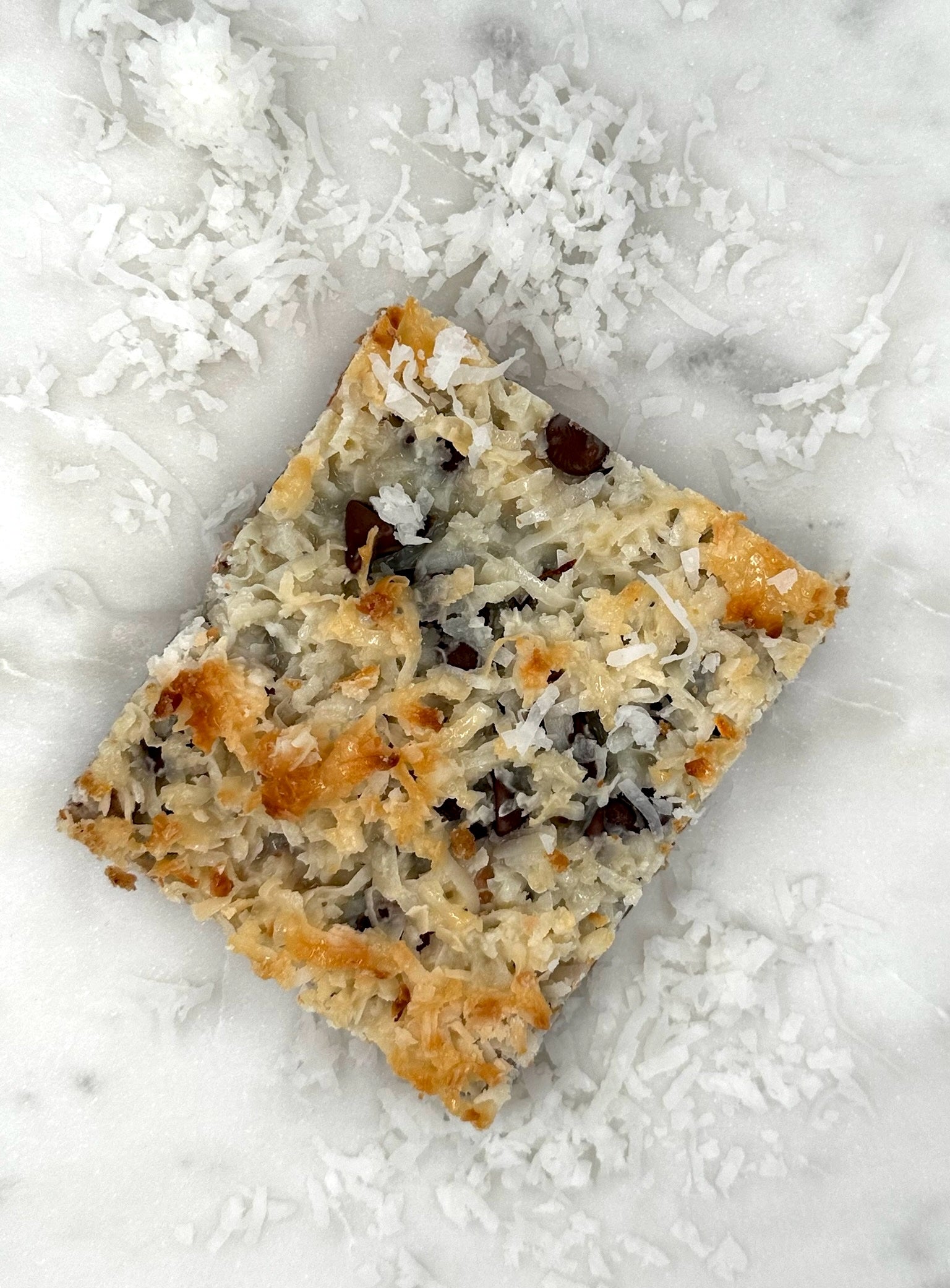 7 Layer Bar with Mix of Chocolate Chips and Coconut Flakes
