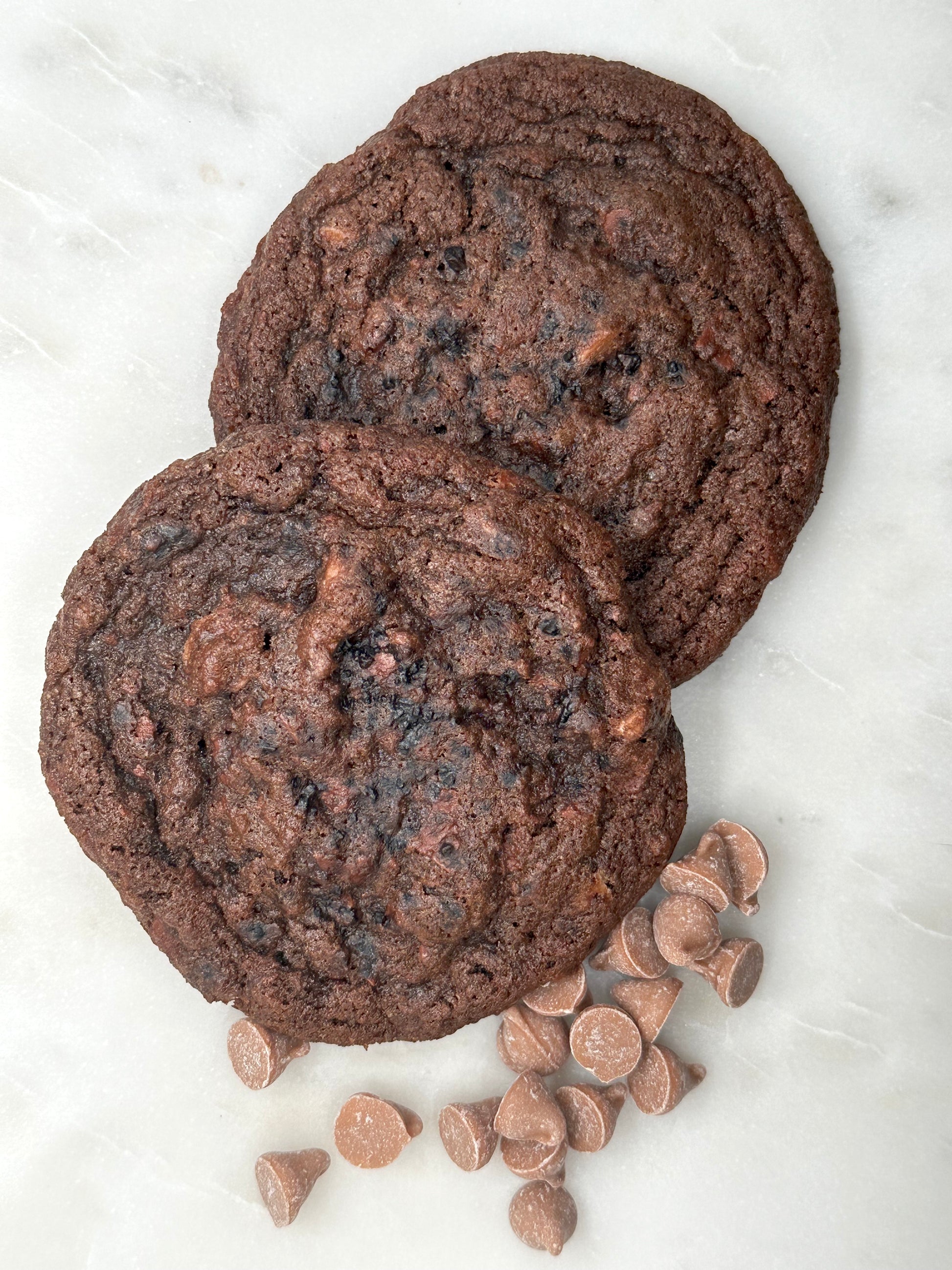 Chocolate Cookie with Milk Chocolate Chunks and Sea Salt Caramel Chips Topped with Chocolate Salt